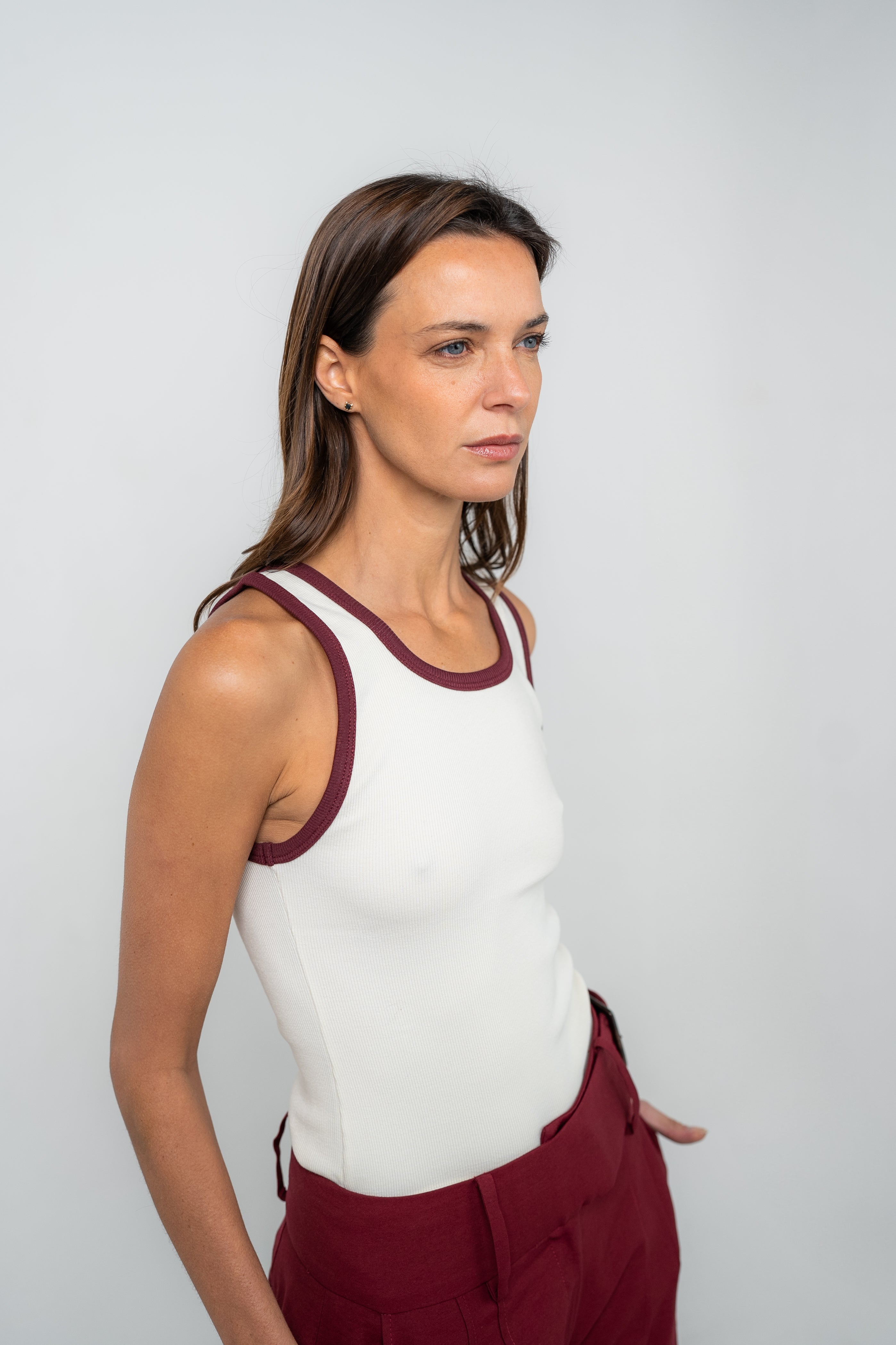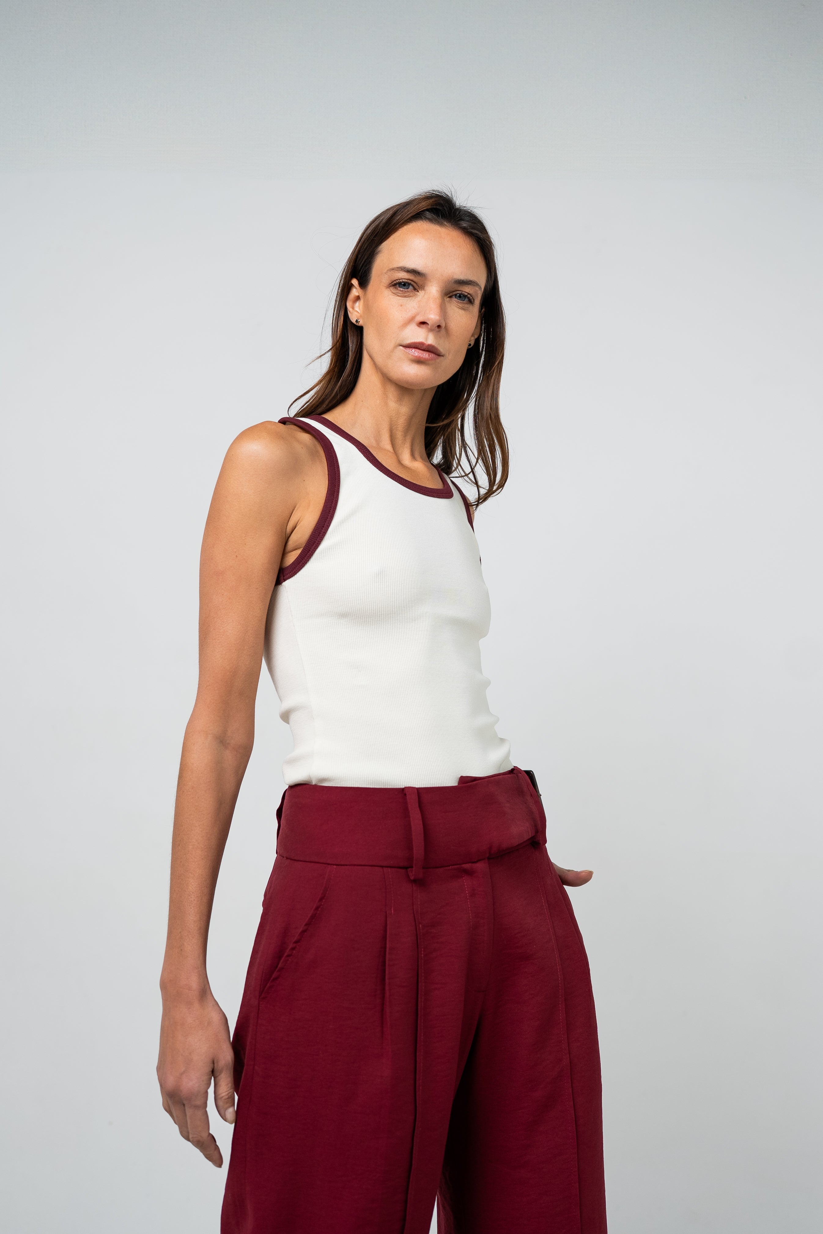 Nuestro Tank Top está hecho de 100% algodón pima peruano de la mejor calidad, garantizando frescura y suavidad. Este diseño minimalista cuenta con un collerete de 1 cm en tela de rib que contrasta con el color base, añadiendo un toque único y elegante. Su largo llega hasta las caderas, haciéndolo ideal para cualquier ocasión. Perfecto para quienes buscan un estilo básico pero sofisticado, este Tank Top se adapta a cualquier look, con una combinación de comodidad y elegancia atemporal.