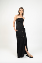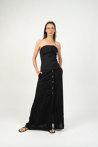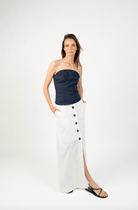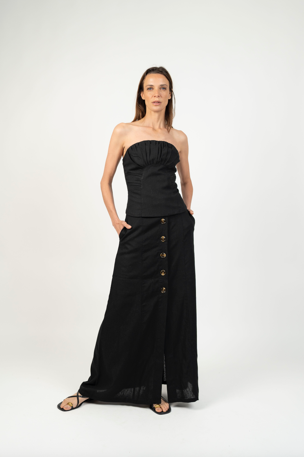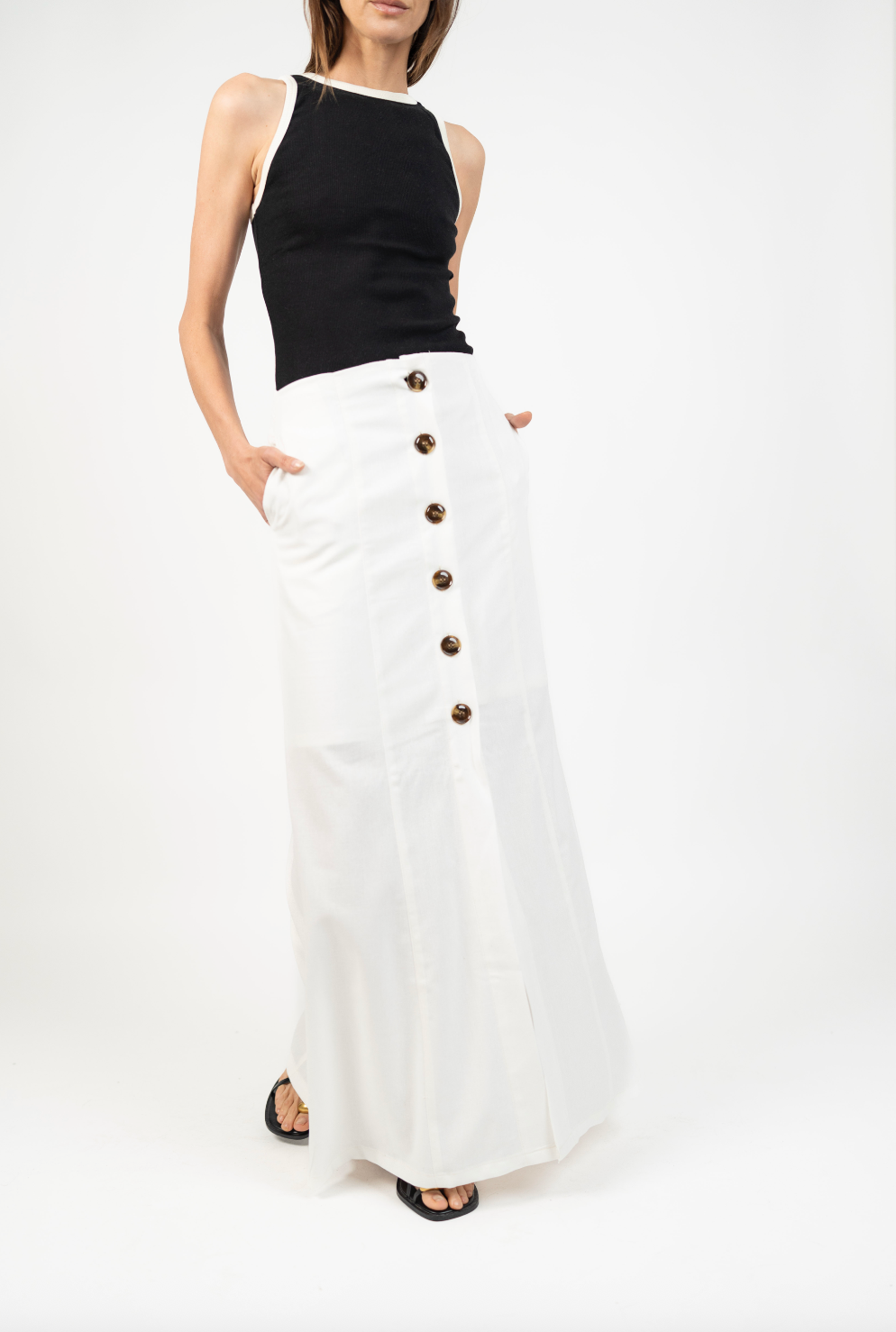 DescripciónUna falda atemporal y versátil, perfecta para elevar tu clóset con un toque natural y sofisticado. Su diseño largo hasta los tobillos y botones frontales hasta media pierna crean una silueta elegante y estilizada, mientras los bolsillos laterales añaden practicidad sin perder estilo. Ideal para usar con blusas ligeras o tops ajustados, tanto en looks casuales como más formales.