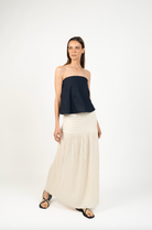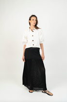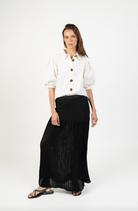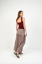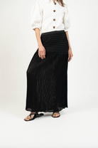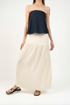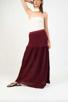 Nuestra Falda tejida destaca por su movimiento fluido y silueta femenina. Confeccionada en tejido acanalado de punto, combina suavidad, textura y caída natural. Su diseño incorpora una pretina ancha que se ajusta cómodamente a la cintura. Una prenda versátil y atemporal que puede acompañarte tanto en el día como en la noche, manteniendo siempre un aire relajado y sofisticado.