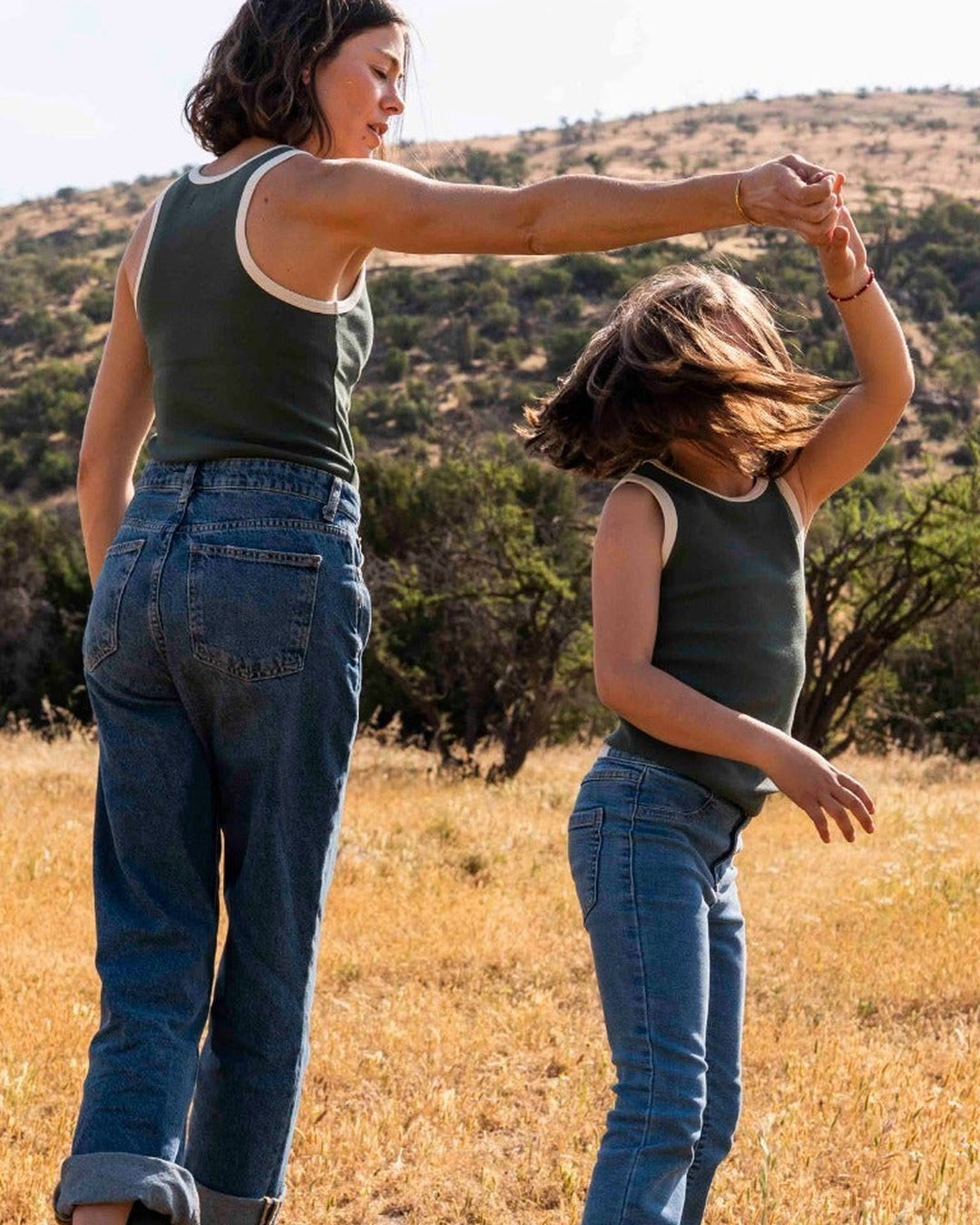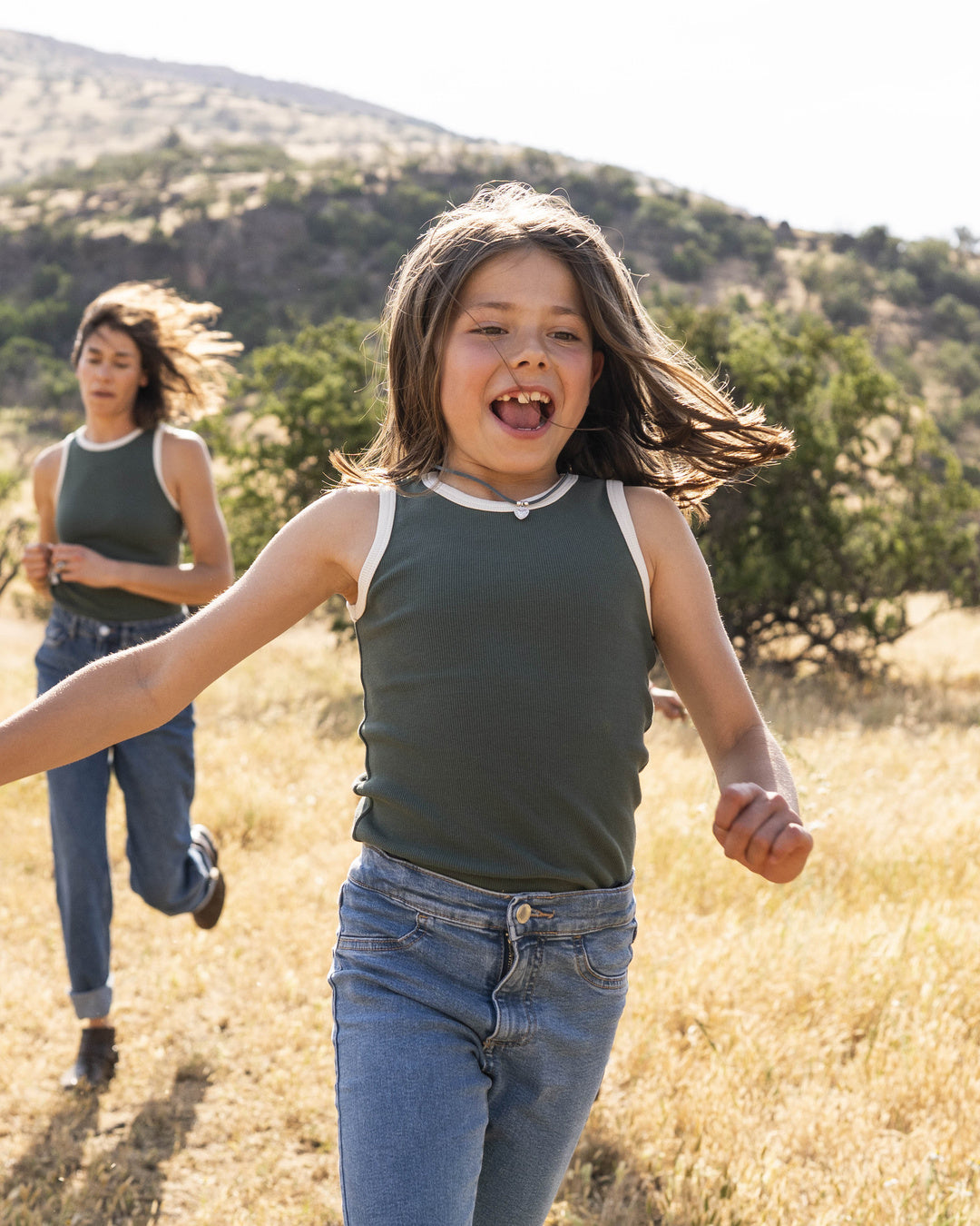 Tank top infantil en verde con borde crudo, diseñado para el día a día: suave, cómodo y con una elasticidad que acompaña el movimiento y el crecimiento. Su silueta limpia y su calce natural lo hacen ideal para usar solo o bajo una camisa liviana.