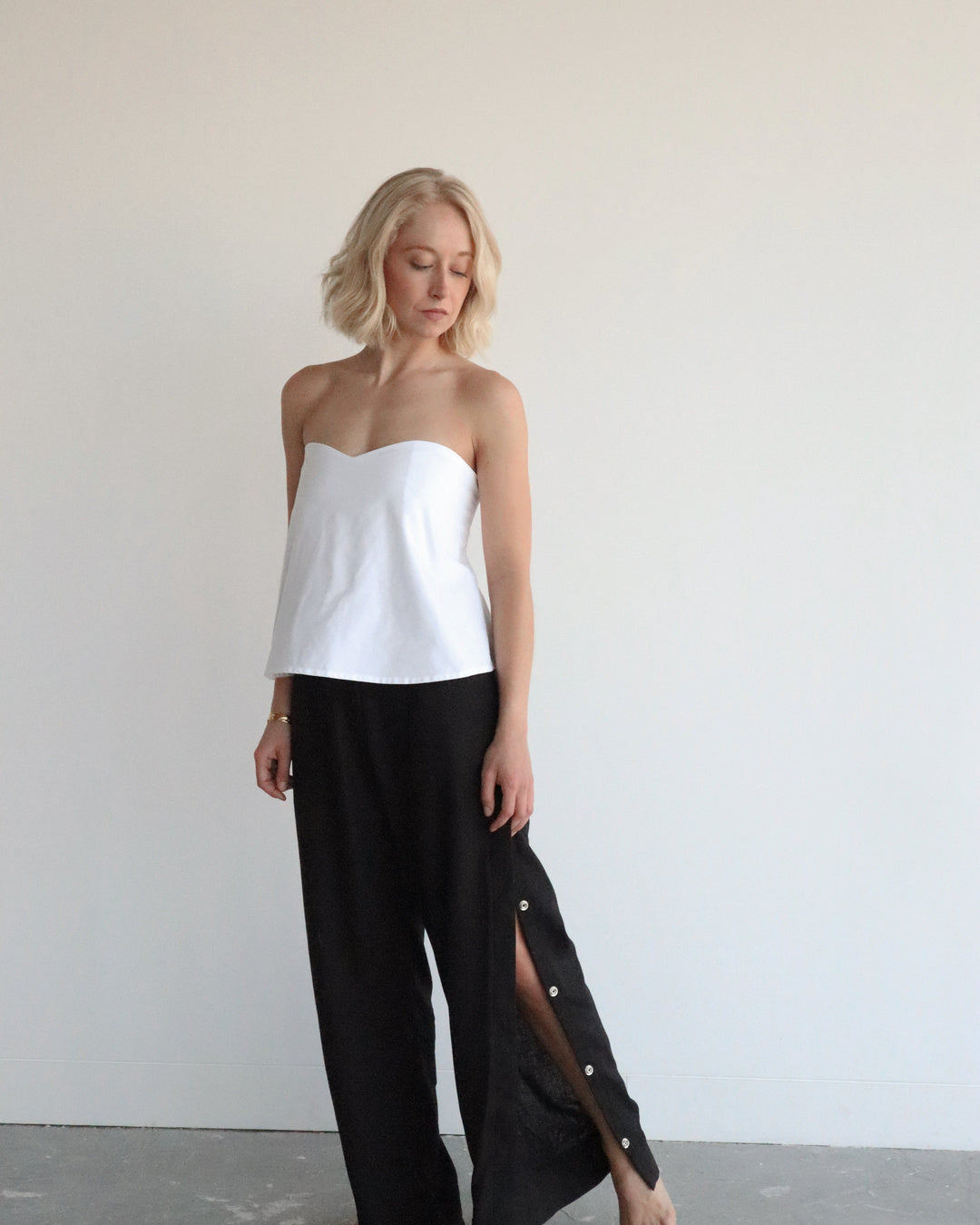 Top Sin hombros con una firmeza extraordinaria gracias a su nido de abeja en la espalda. Es una prenda indispensable en el closet de toda mujer.