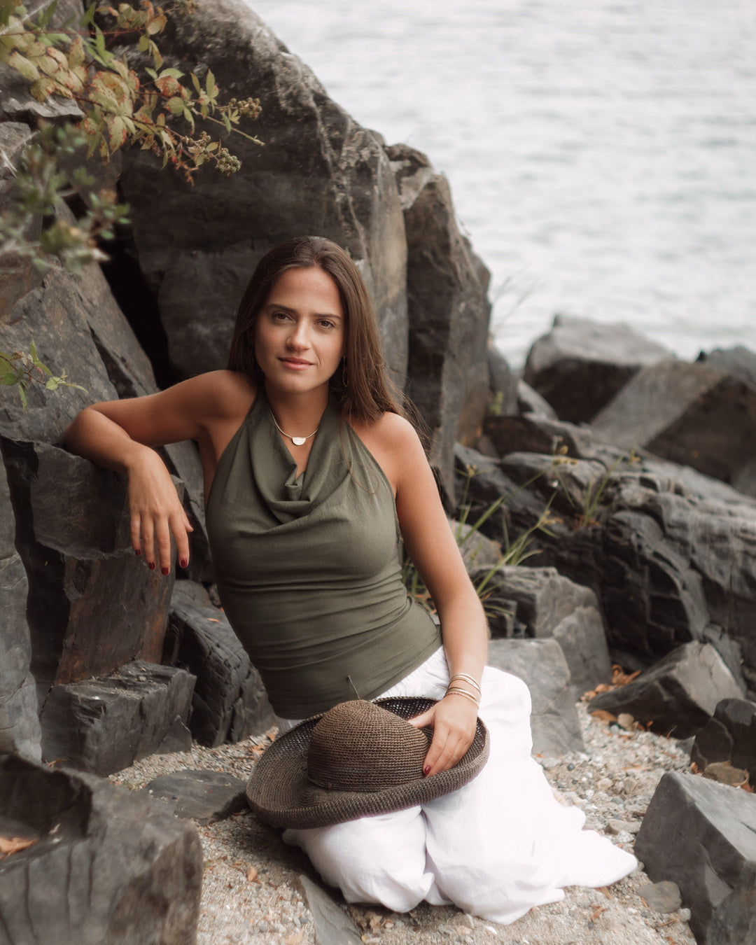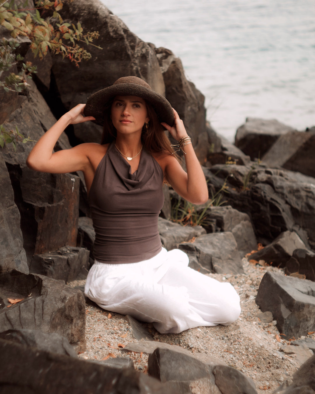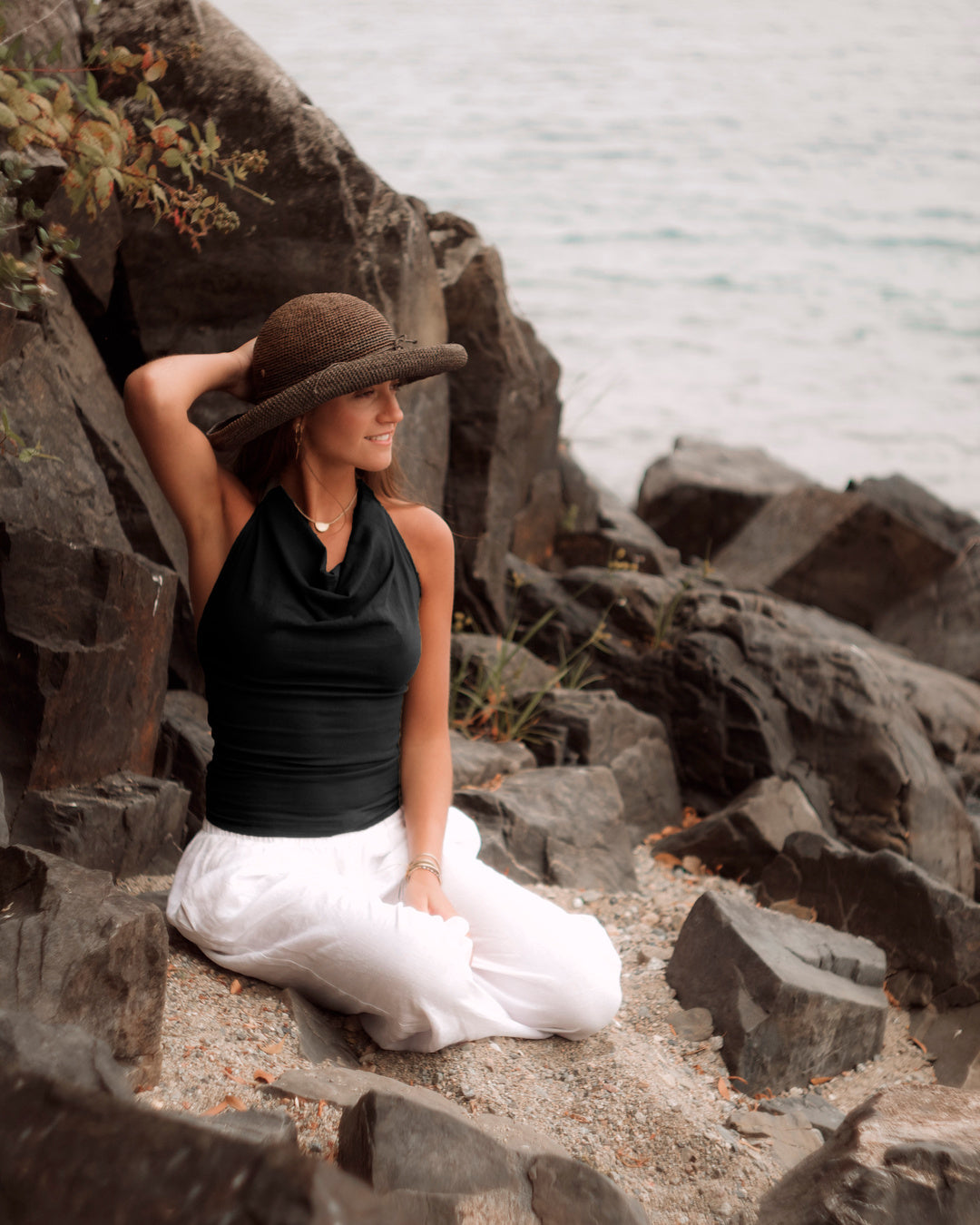 Top halter con diseño elegante y minimalista. Confeccionado en algodón pima peruano para una suavidad excepcional.