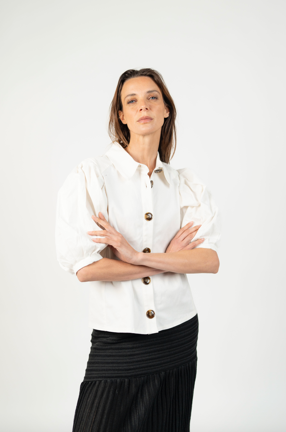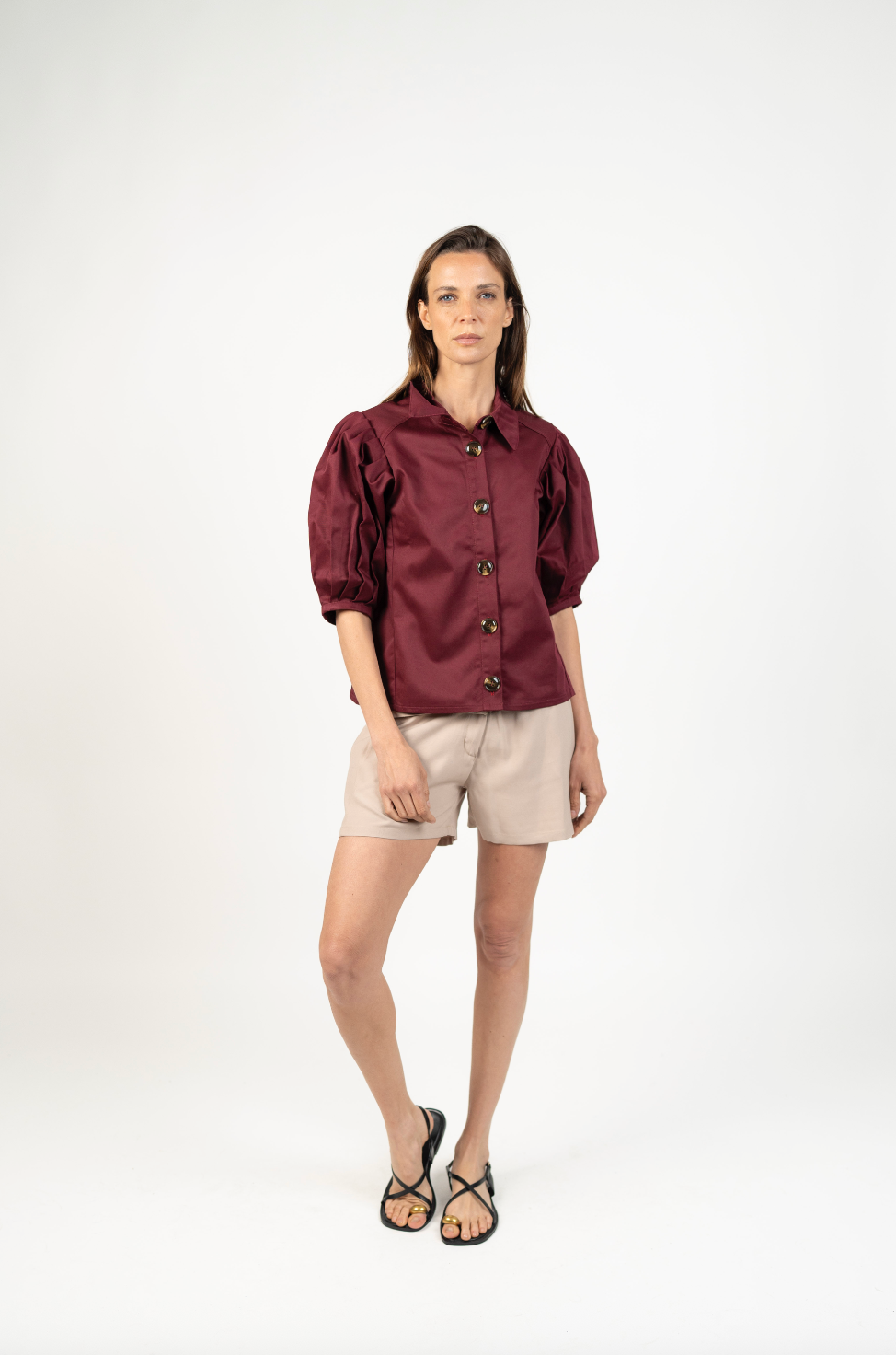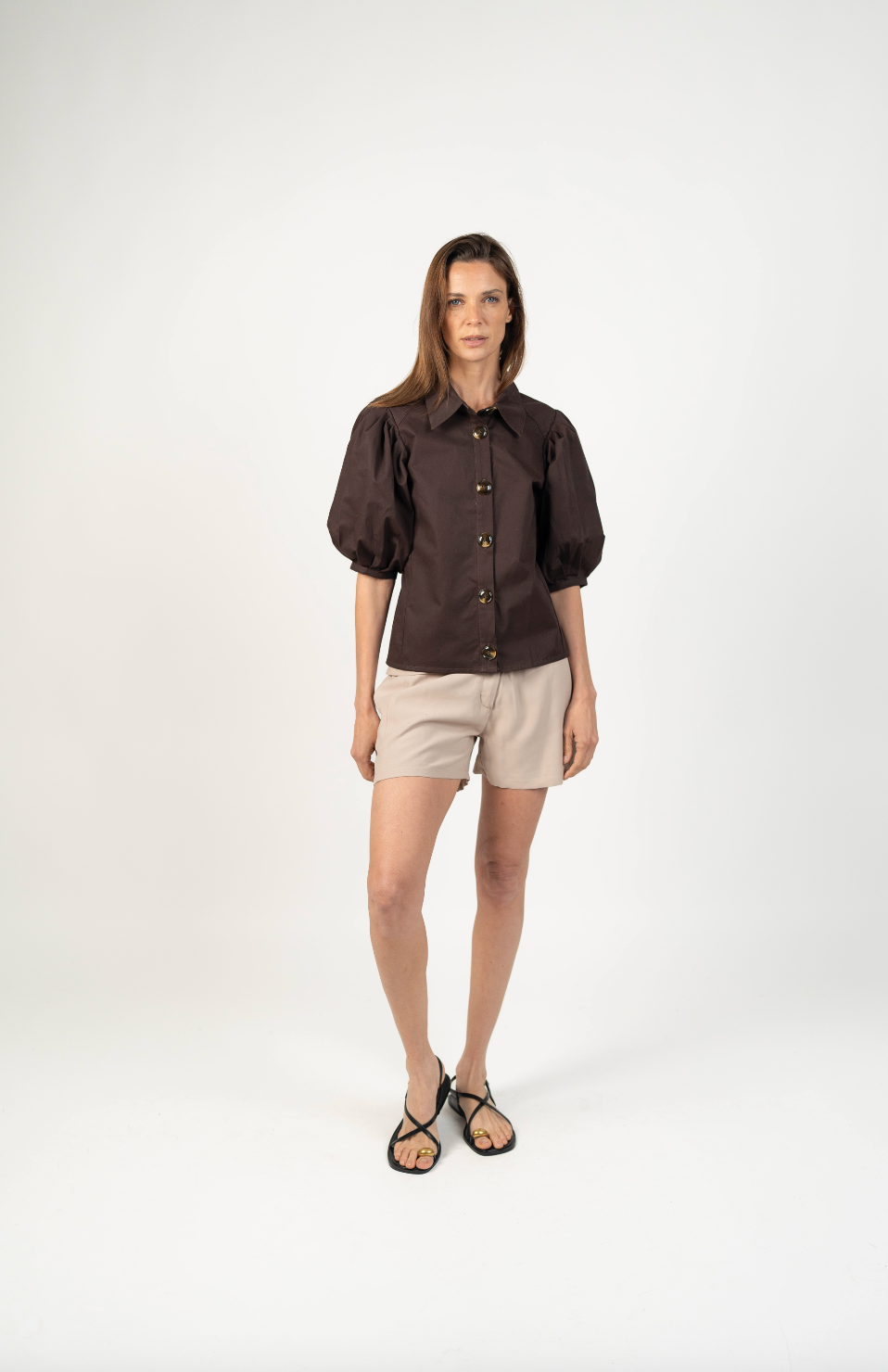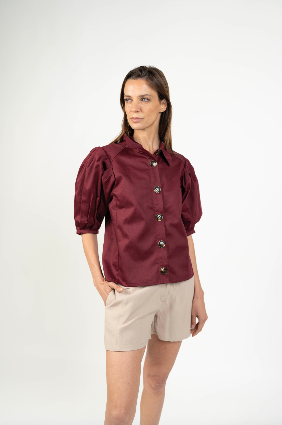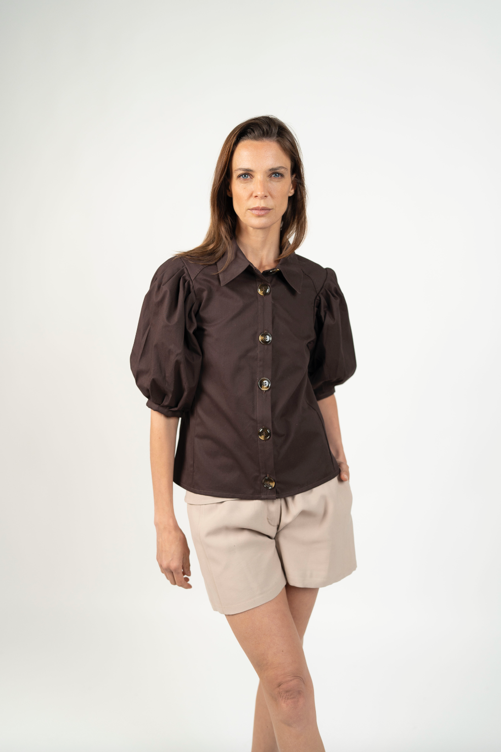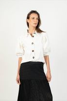 DescripciónUna blusa elegante y versátil diseñada para elevar cualquier look. Su silueta estructurada y mangas globo aportan volumen y sofisticación, mientras que los botones frontales grandes añaden un detalle clásico y atemporal. Perfecta para combinar con pantalones de vestir o jeans, convirtiéndose en un básico moderno para tu clóset.