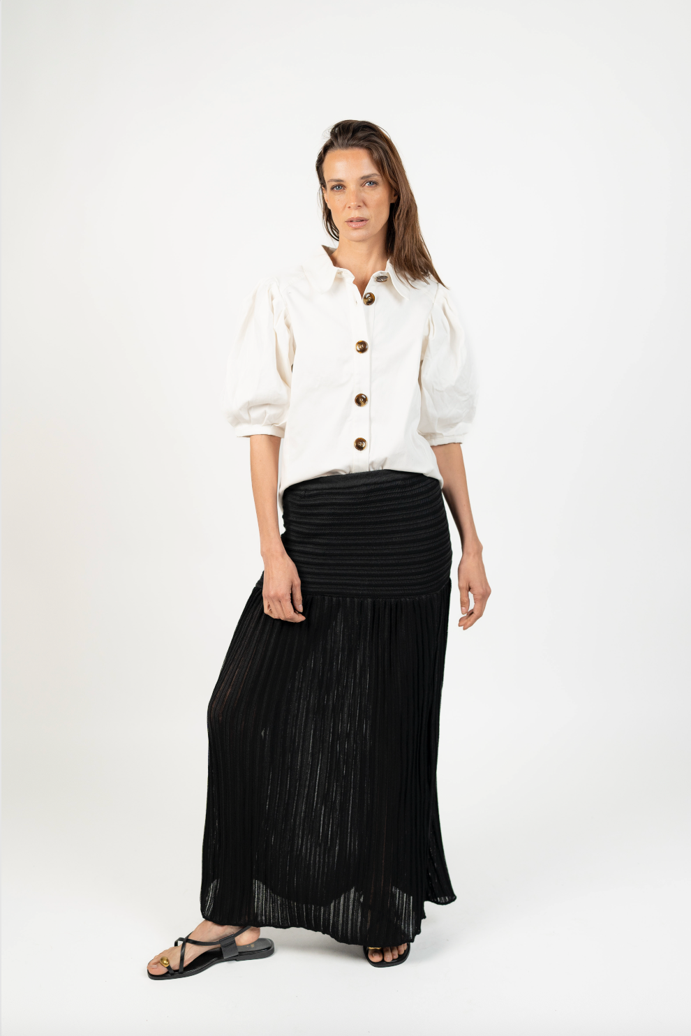 Fit NotesCalce recto y ligeramente estructurado. Mangas con volumen y ajuste en el puño para una silueta definida.
