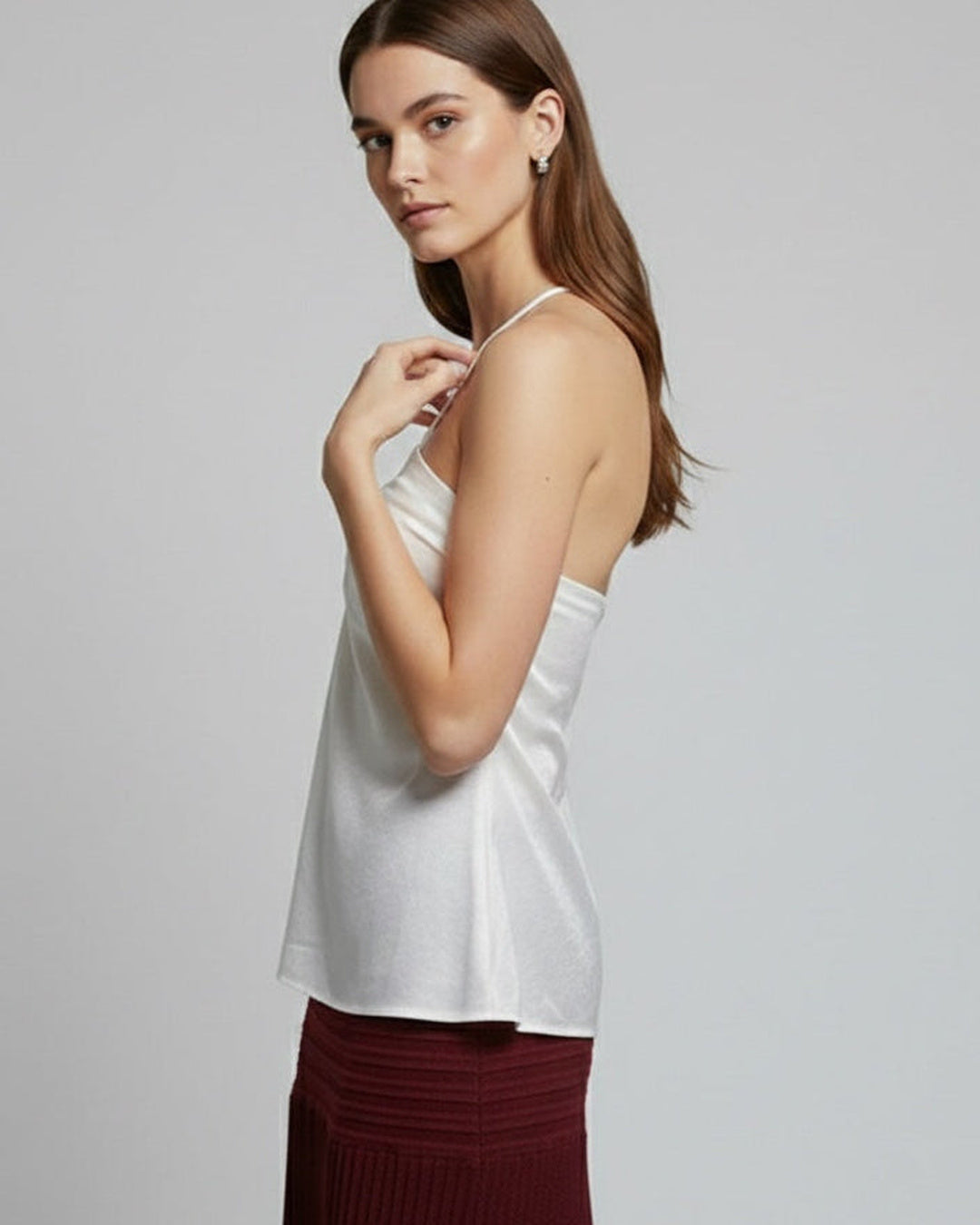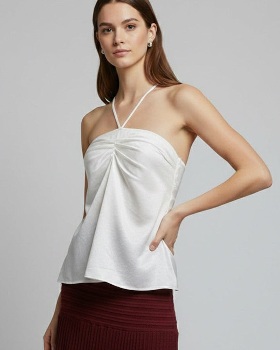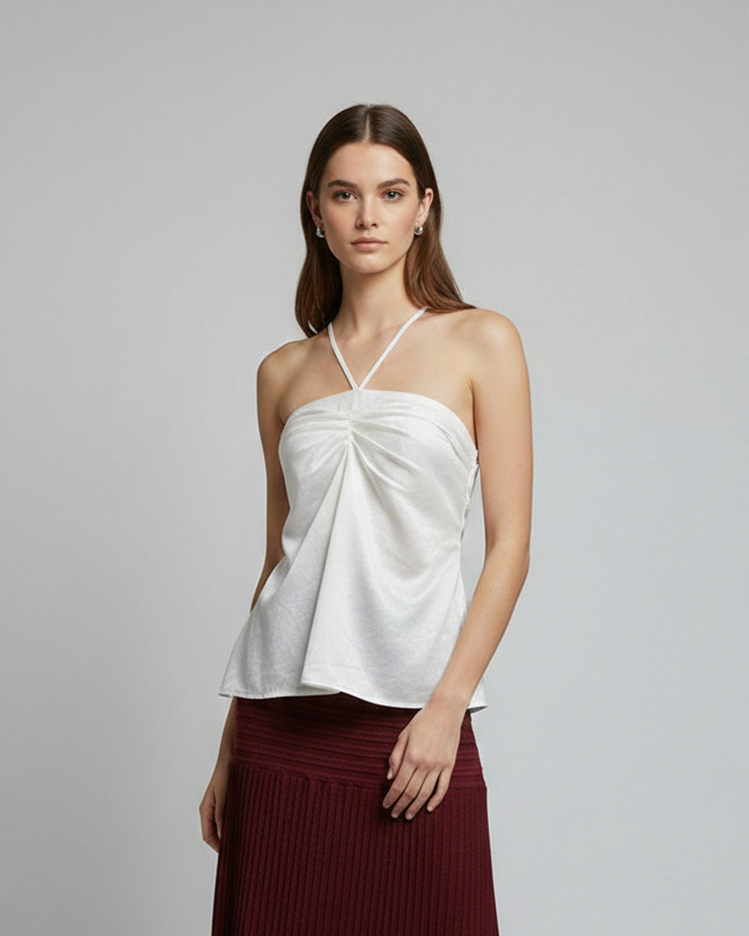 Este top es una pieza fresca y delicada, pensada para los días de calor y para quienes buscan un look natural y femenino. Su diseño combina líneas simples con un juego de frunces que aportan textura y movimiento, logrando una silueta relajada pero cuidada. Ideal para usar solo o en capas, es un básico elevado que funciona tanto en looks cotidianos como más especiales.